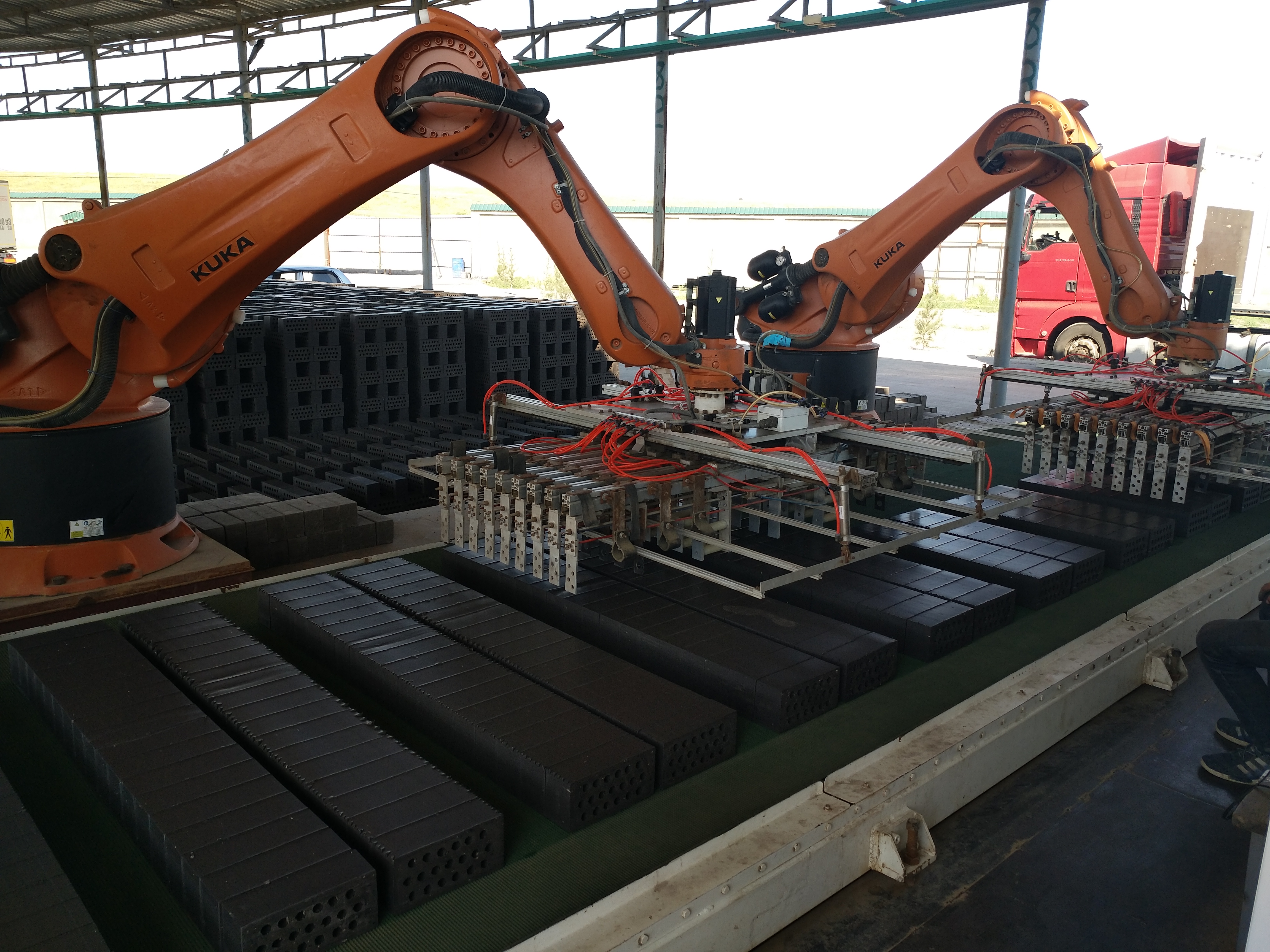 這其中新疆晨光164磚廠的周總,便是其中的受益者。新疆周總以前用5條輪窯燒磚,產(chǎn)量低,用工多,管理困難。南通恒達公司在17年幫其建造了兩條9.38*160米環(huán)保型移動式隧道窯,并配套機器人碼坯,一舉解決了產(chǎn)量低和用工多的問題,兩條隧道窯日產(chǎn)60萬,工人僅45人。